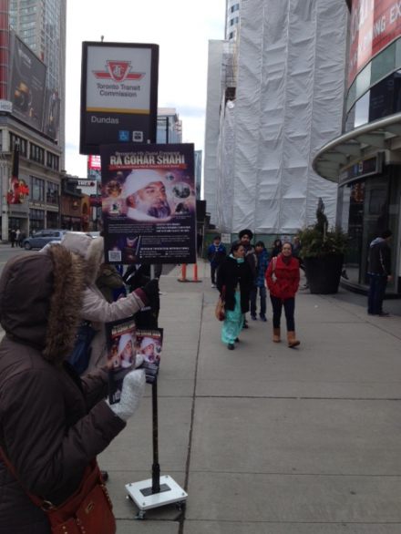 n the 27th and 28th of December, 2014, advocates of Messiah Foundation International propagated the message of Lord Ra Riaz Gohar Shahi in Downtown Toronto (Ontario, Canada). Our team distributed leaflets throughout the busy streets and explained the message of love. Recipients of our message felt inspired and they admired our mission. Many passers-by from various communities approached our team and asked for leaflets.