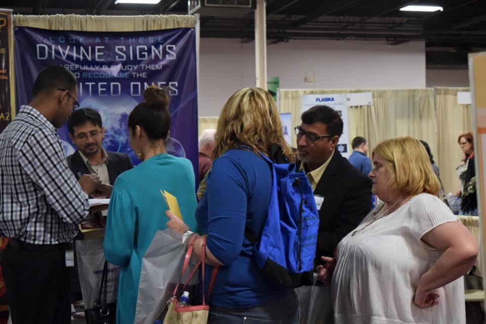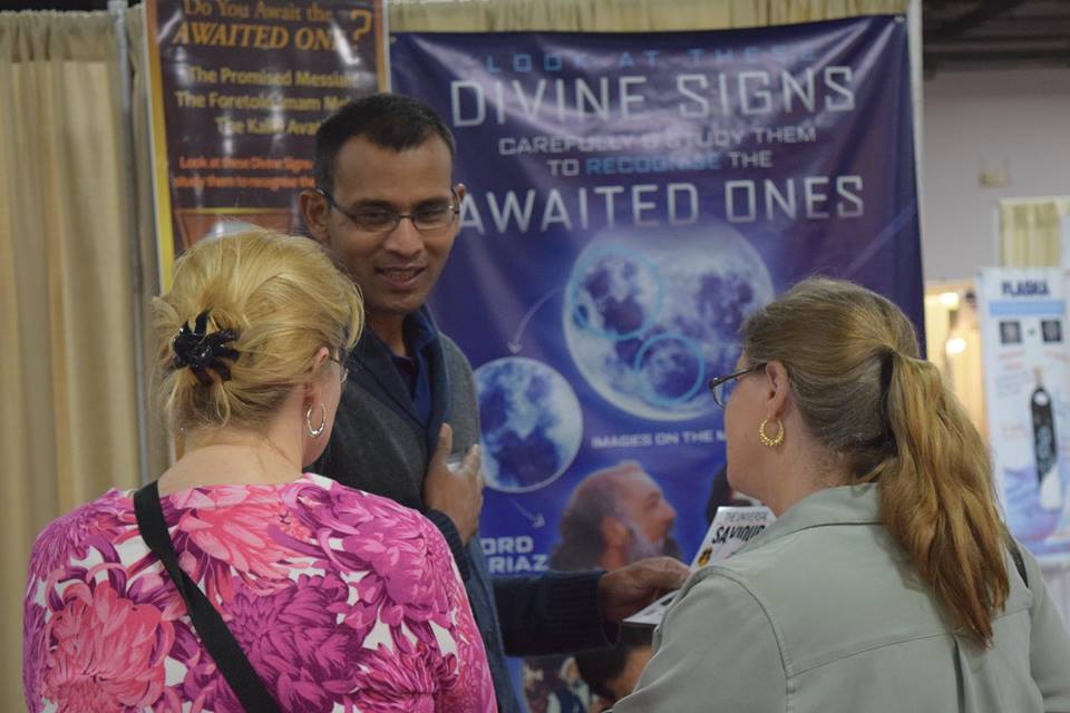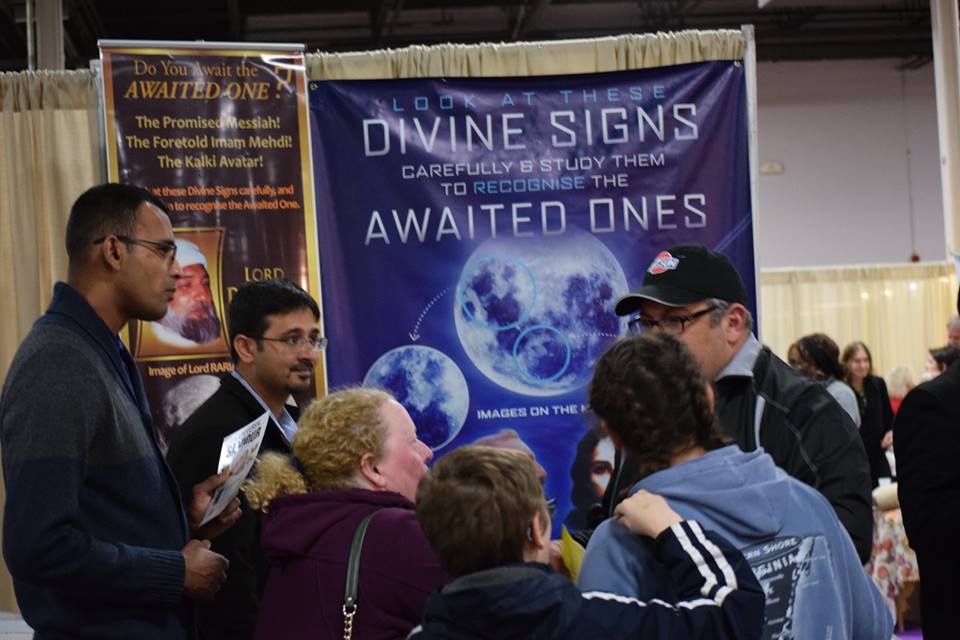 team from Messiah Foundation USA set up their booth at the Mind, Body and Spirit Expo in the Garden State Exhibit Center, in Somerset, New Jersey. There, visitors were given information about the Divine Signs, free spiritual healing and were granted Invocation of the Heart. The expo was attended by approximately 2000 people who were very receptive to His Divine Eminence Lord Ra Riaz Gohar Shahi’s message of divine love. Our booth was consistently busy during the last two days of the expo.