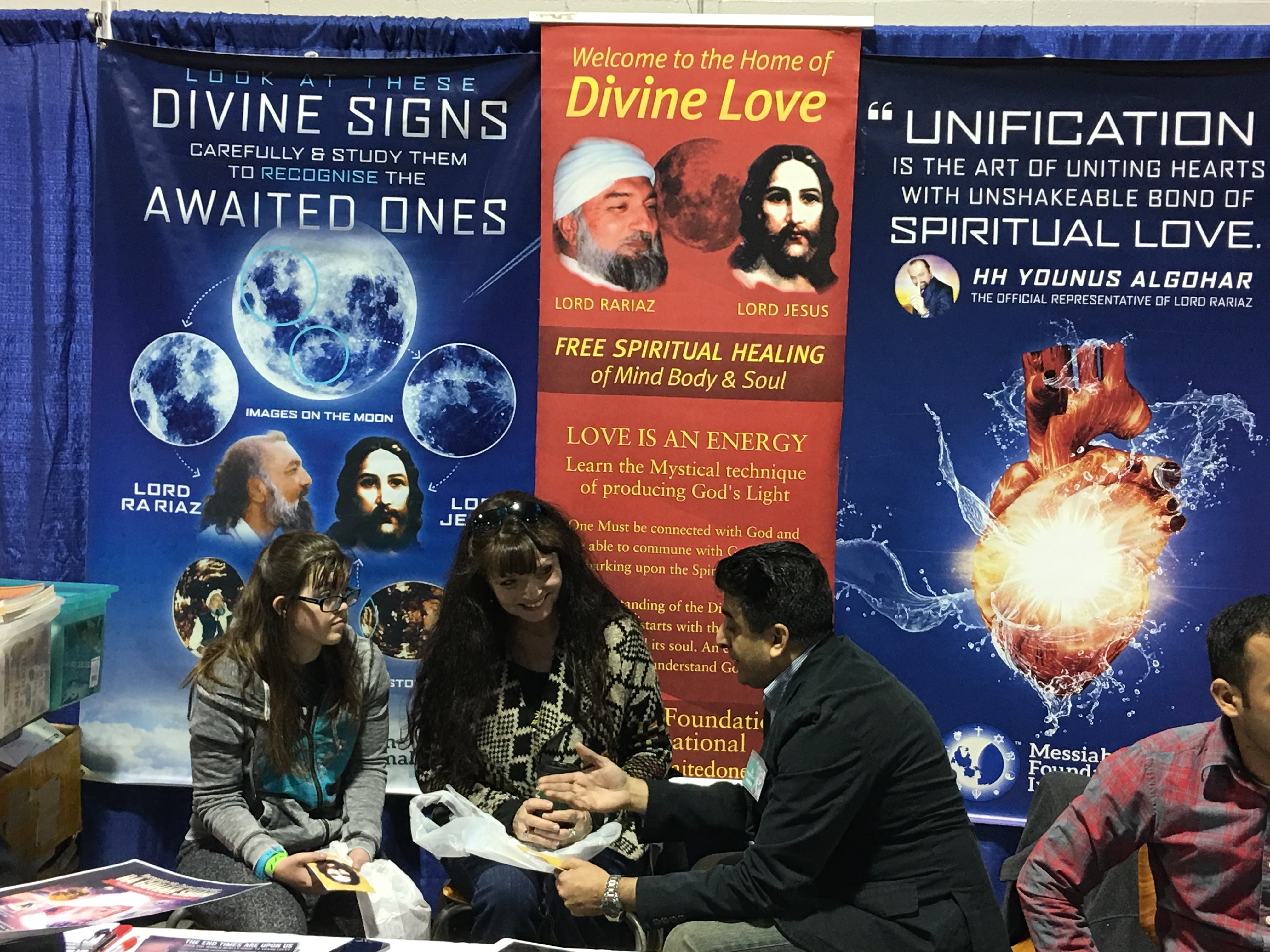Recently, a team from Messiah Foundation USA set up their booth at the Body Mind and Spirit Expo in Raleigh, North Carolina, USA. There, Messiah Foundation raised awareness of the divine signs, gave free spiritual healing and granted Invocation of the Heart. The expo was attended by approximately 2000 people who were very receptive to Lord Ra Riaz Gohar Shahi‘s message of divine love. Our stall was consistently busy throughout the two days of the expo! The expo team was overwhelmed by the positive response.