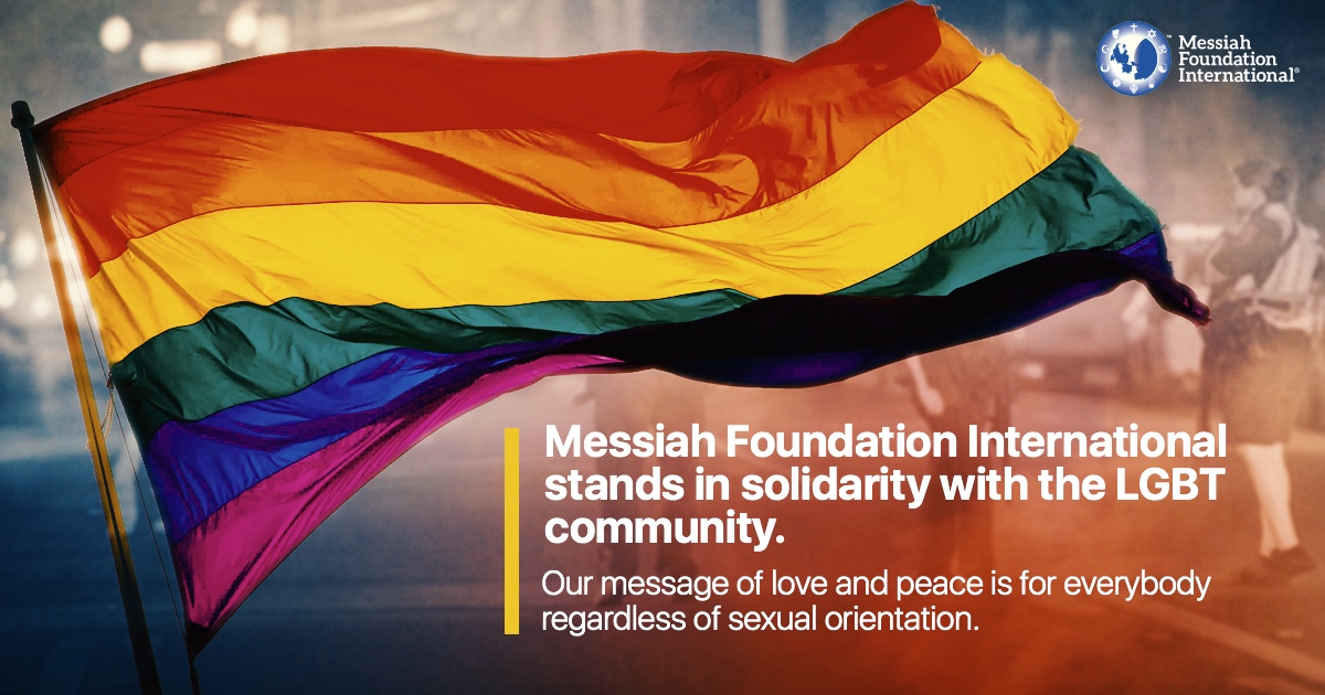 Messiah Foundation International stands in solidarity with the LGBT community. Our message of love and peace is for everybody regardless of sexual orientation.