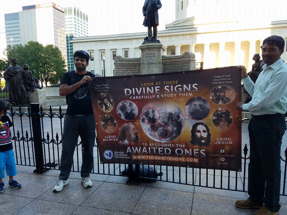 Messiah Foundation USA has been busy taking the message of divine love to different cities along the East Coast. They visited downtown Philadelphia, North Carolina and Ohio, where they publicised the divine signs of the Awaited Ones Lord Ra Riaz Gohar Shahi and Lord Jesus Christ. Overall, the response was fantastic! We look forward to expanding our activities in these states in the near future.