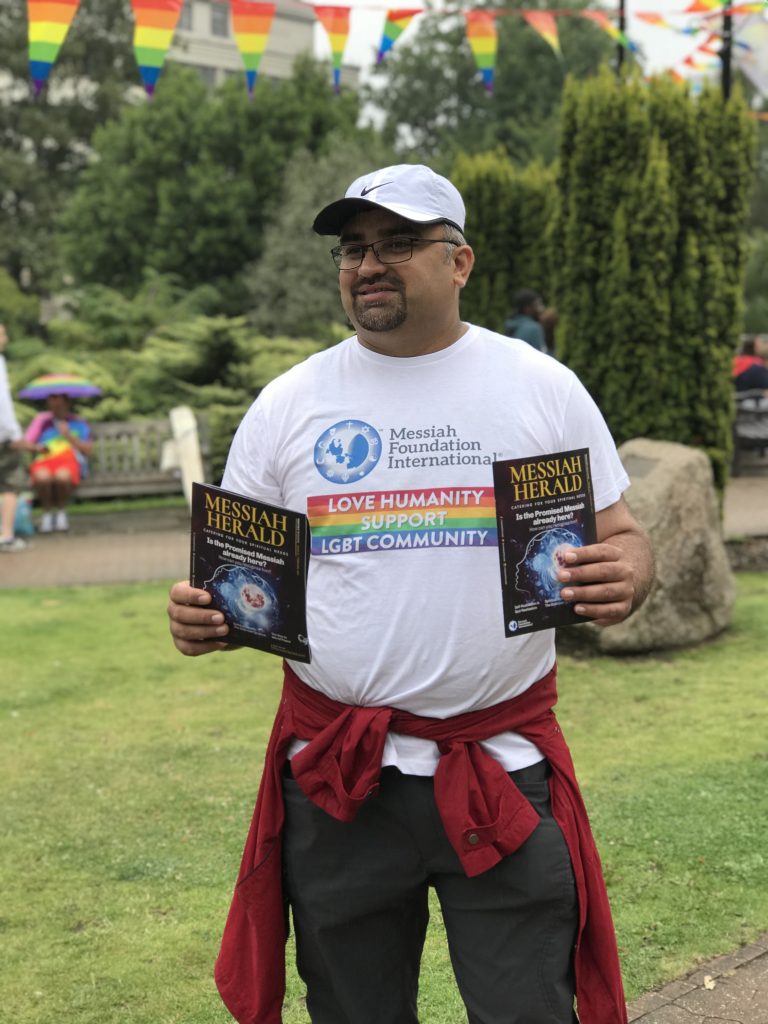 More than 3000 festival-goers saw the Divine Signs and merciful images of HDE Lord Ra Riaz Gohar Shahi and Jesus Christ. Our members held up banners near the entrance of Queens Gardens where the parade culminated. Over 100 copies of the Messiah Herald Magazine, a monthly publication by Messiah Foundation, were also distributed at the pride.