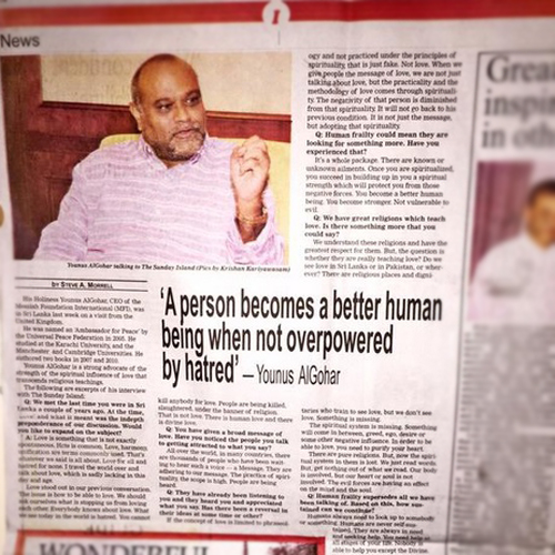 The Sunday Island’s Interview with HH Younus AlGohar